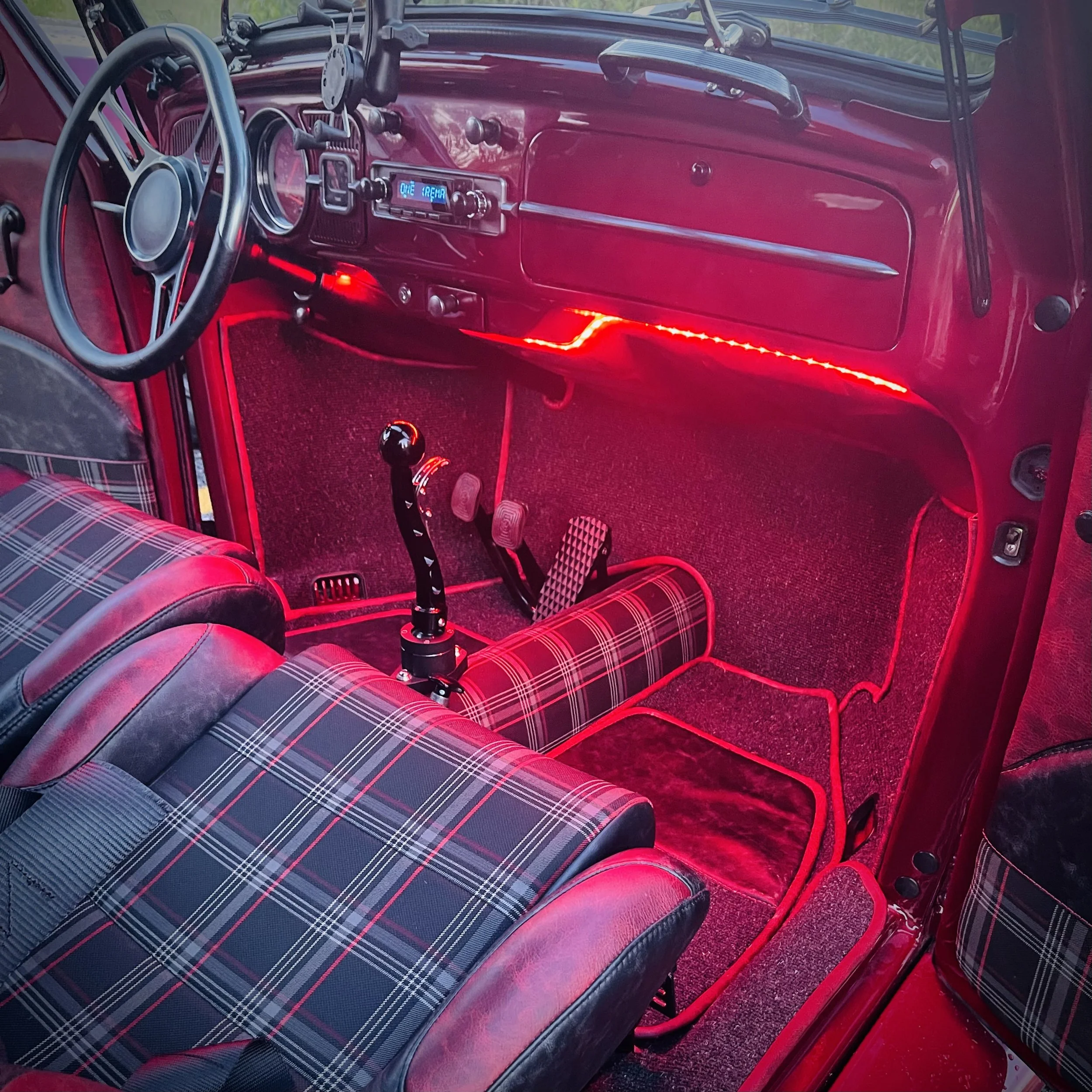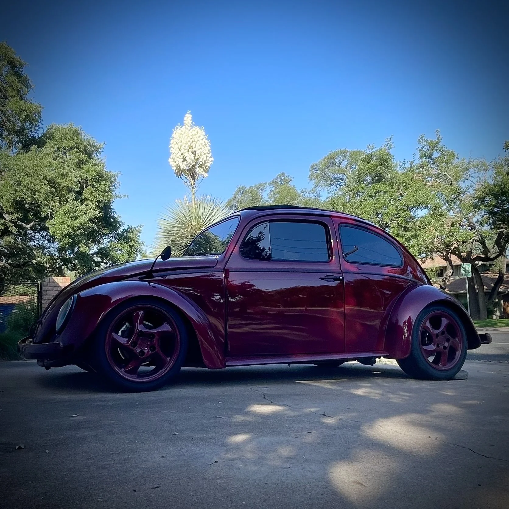 Built by magicians in Alabama. Living large in Texas. An air-cooled, 1963, ragtop, VW bug. New 1776cc dual-carb, dual-port motor built by Darryl’s Aircooled Engines of Neosho, MO.